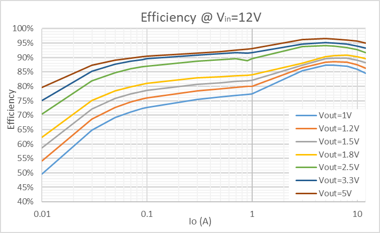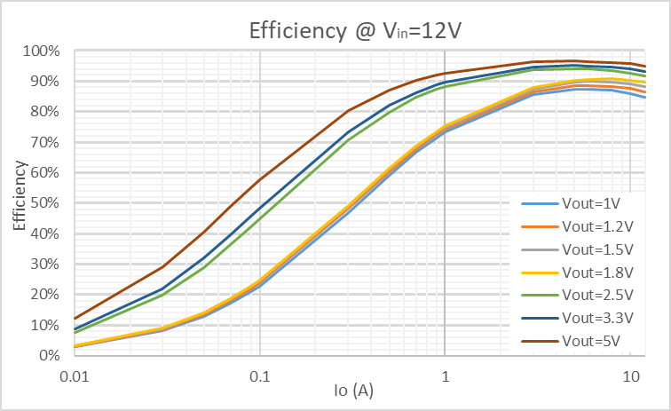 VIN = 12V, Vo = 3.3V, Io = 12A