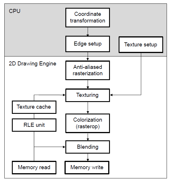 | 2 | 图像和纹理的复制与缩放 2D绘图引擎能够对图像或纹理进行高效的复制、缩放、旋转等操作。适用于图标缩放、背景图像平滑移动等用户界面效果。 |