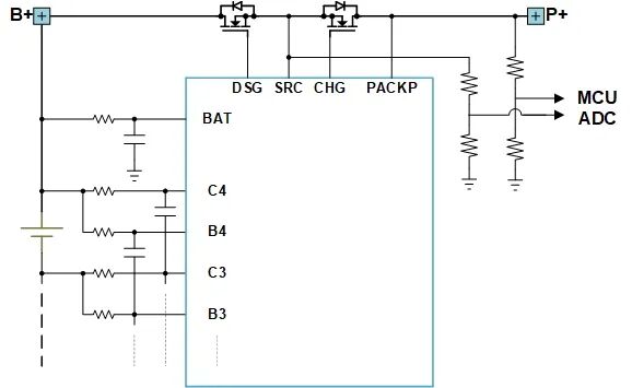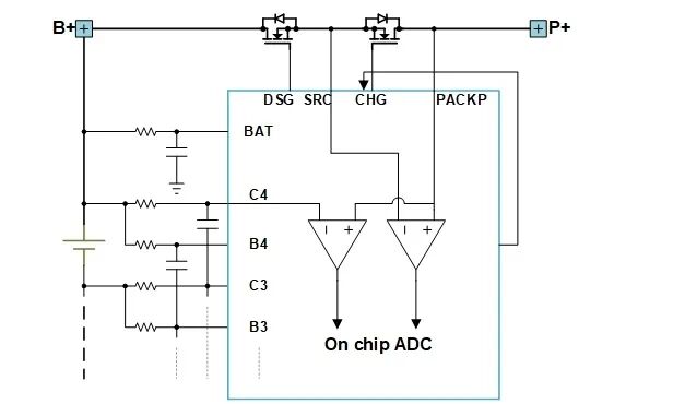 SA63654采用创新的差分架构,一路采集P+端与B+端的压差即MOSFET的压降;一路采集SRC端与P+端的压降即充电管的压降。差分采样,消除了单端采样带来的功耗问题和同步性问题,直接保证了精度,消除了两路单端异步采样带来的诊断误判风险;SA63654的方案还可以节约MCU资源,降低MCU负荷。