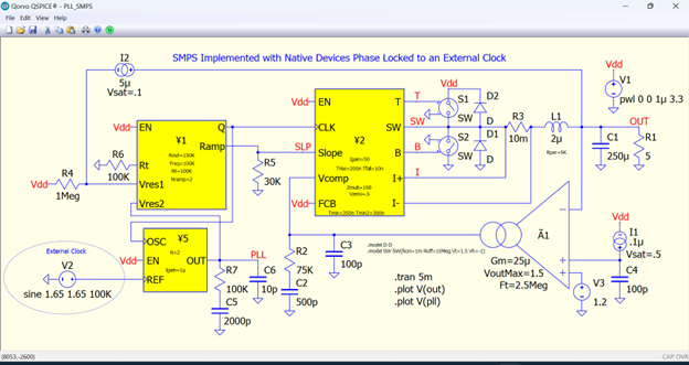 基于原生器件实现的外部时钟锁相开关电源QSPICE论坛原理图精选