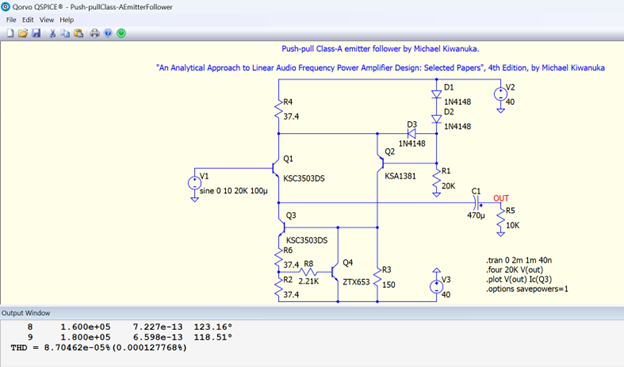 推挽型甲类发射极跟随器QSPICE论坛原理图精选