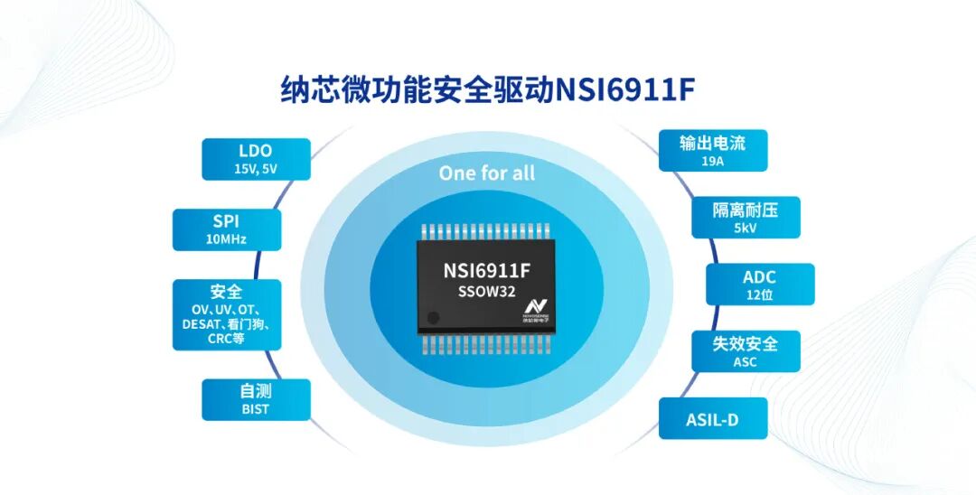 针对功率类电机的安全运行需求,纳芯微将于年底推出国内首款 ASIL-D 功能安全驱动 NSI6911F。该产品历经四五年迭代优化,集成 ADC、隔离电源管理、LDO 及自检(BIST)功能,堪称完整的模拟芯片总成,兼具原副边电源管理能力,拥有 19A 快速关断性能与多种安全关断保护策略,内置 12 位高精度 ADC 模块(通过 ASIL-B 认证),且具备过温保护功能,可守护驱动电路免受过热影响。