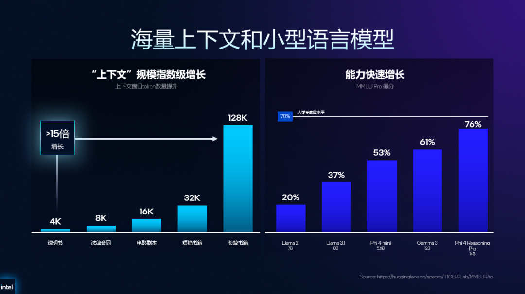 智能体能力进阶:伴随上下文规模从4K提升至128K token(增长超过15倍),AI智能体模型能力也从Llama 2 7B的20%提升至Phi 4 Reasoning Pro 14B的76%,已接近人类专家级水平(78%)。