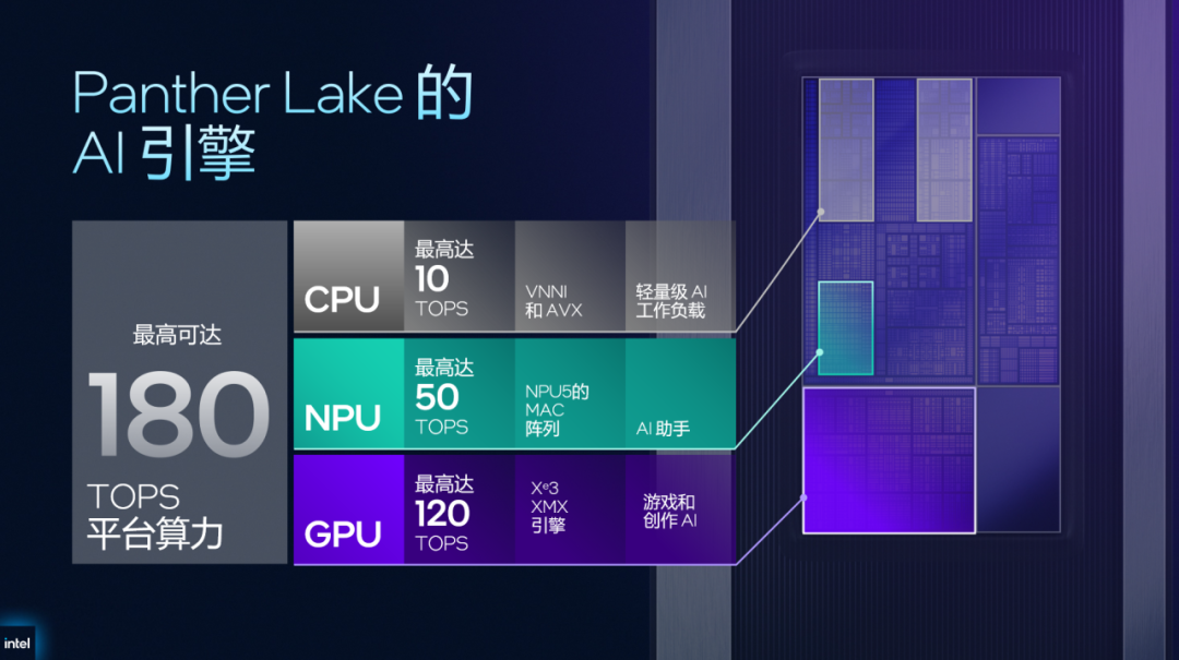 A:新一代酷睿Ultra的NPU、CPU、GPU三擎发力,全平台算力直冲180 TOPS,比上一代暴涨50%1,能轻松跑各种复杂模型。