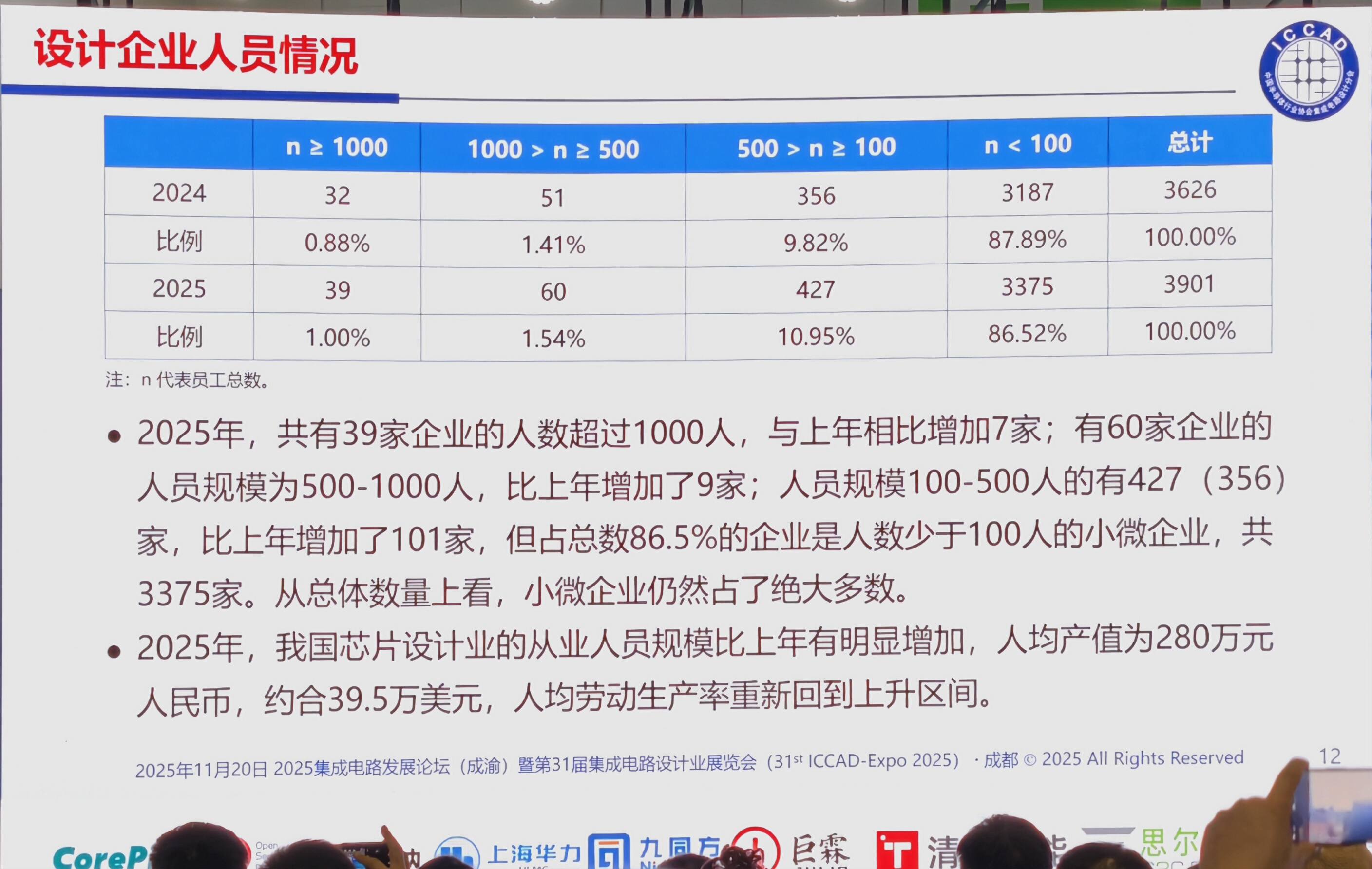其实,我国芯片设计业的从业人员规模相比2024年有了明显增加,人均产值约为280万元(约39.5万美元),人均劳动生产率重新回到上升区间。