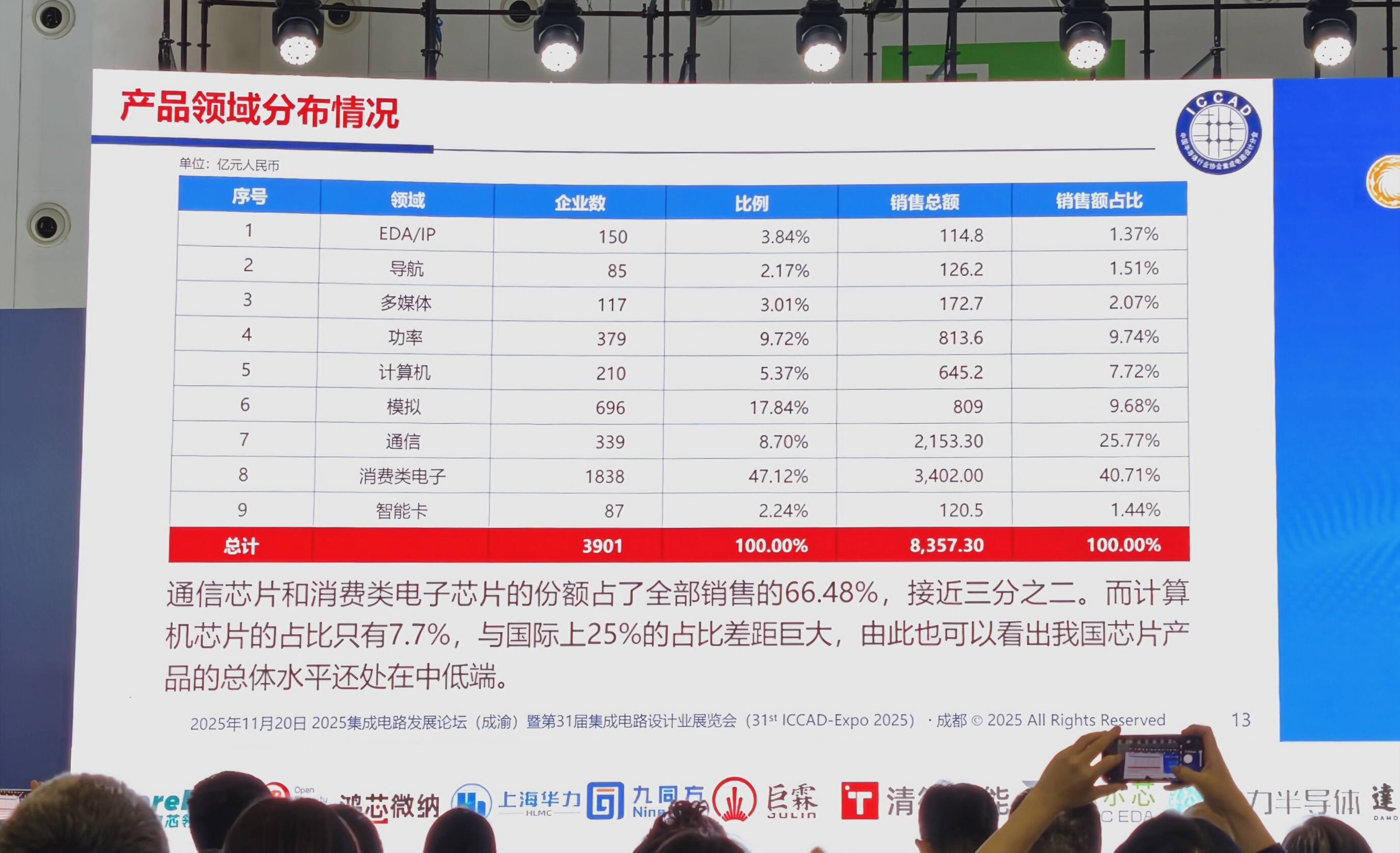 11月20日,中国半导体行业协会集成电路设计分会理事长魏少军教授在ICCAD-Expo 2025上发表了《技术创新驱动设计产业升级》的主题报告。他分别从中国芯片设计业总体发展情况、芯片设计业发展质量分析,以及推动芯片设计产业升级三方面做了介绍。