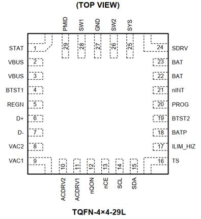 - 充电效率:96%@VVBUS = 9V,VBAT = 8V,ICHG = 2A,fSW = 750kHz;