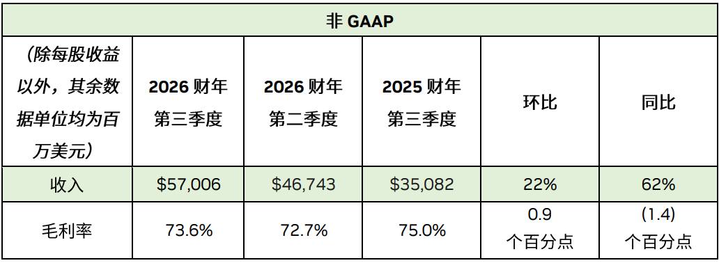 NVIDIA 今日宣布,截至 2025 年 10 月 26 日的第三季度收入为 570 亿美元,较上一季度增长 22%,较去年同期增长 62%。