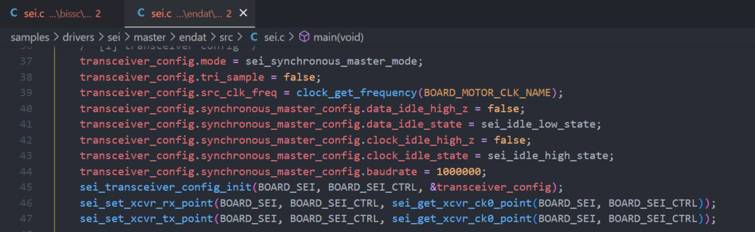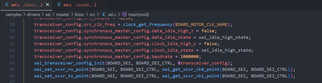 先楫半导体SDK1.10.0提供了诸多SEI应用的实例,包括Biss-c、Endat、Hiperface、Nikon、SSI、Tamagawa等串行协议的主站、从站配置源码,开发者在sample实例的基础上,简单的进行修改即可应用到项目中。