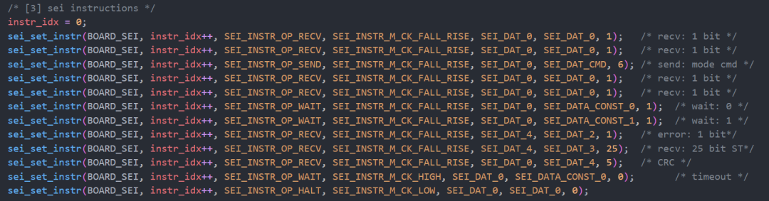 下面对SEI工作的流程进行直观的举例描述,时序如下图所示,代码参考samples\drivers\sei\master\bissc\src\sei.c: