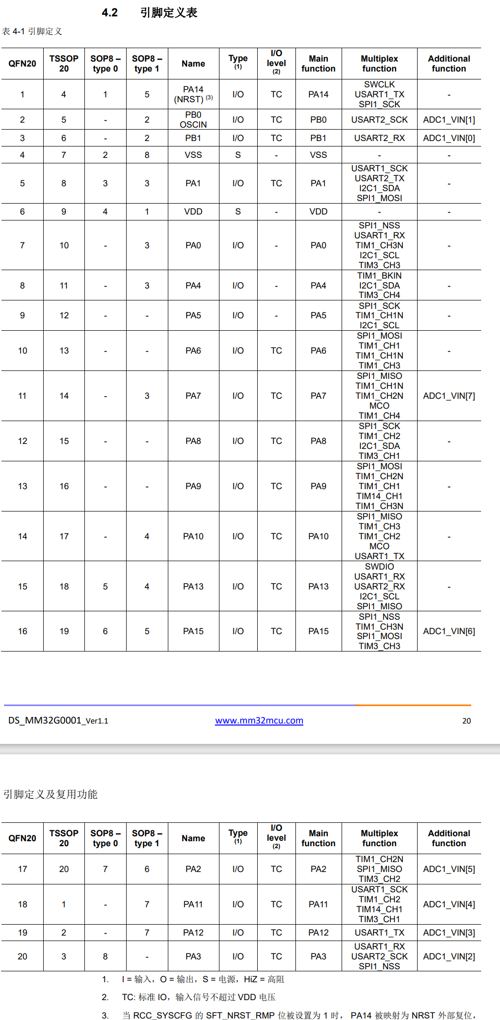程序调试,测试了最简单的点灯,后面又做了一下串口,可以对着MM32G0001的数据手册来看可以使用的引脚,我没有改变官方例程里面的引脚,使用默认的PA1、PB1两个引脚,按照这个引脚连接到ttl就可以直接使用。