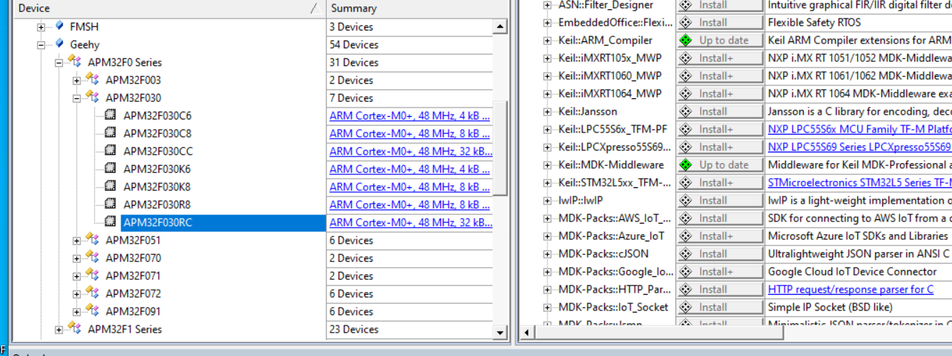 我本来打算通过I2C接口控制一个屏幕显示,但发现GPIO并没有额外引出来,所以只好作罢。不过,我还是搭建了环境,烧录了一下,测试了整个流程是否有问题。还可以通过在线下载pack的方式下载pak但是没看到 f035估计是这个板子比较新