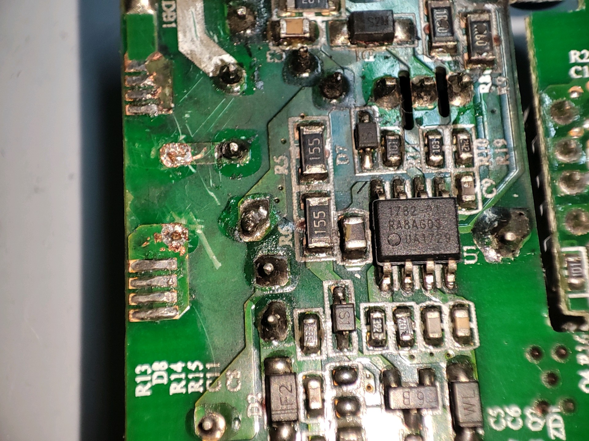 用的时候保险丝突然炸了,顺便拆开看看。第1张图片是一个光藕, ra 8 a703, 这个是来自英集芯的快充协议芯片,它是充电器,支持快充的心脏。6016hs这应该是一个锂电池充放电管理芯片或者是运算放大芯片,它是充电器的大脑,控制充电器以及放大信号内部做工还是比较紧实的原来里面还有隔离的塑料片,有缓冲胶。高低压区域电路板做的有隔断,重量也是非常沉
