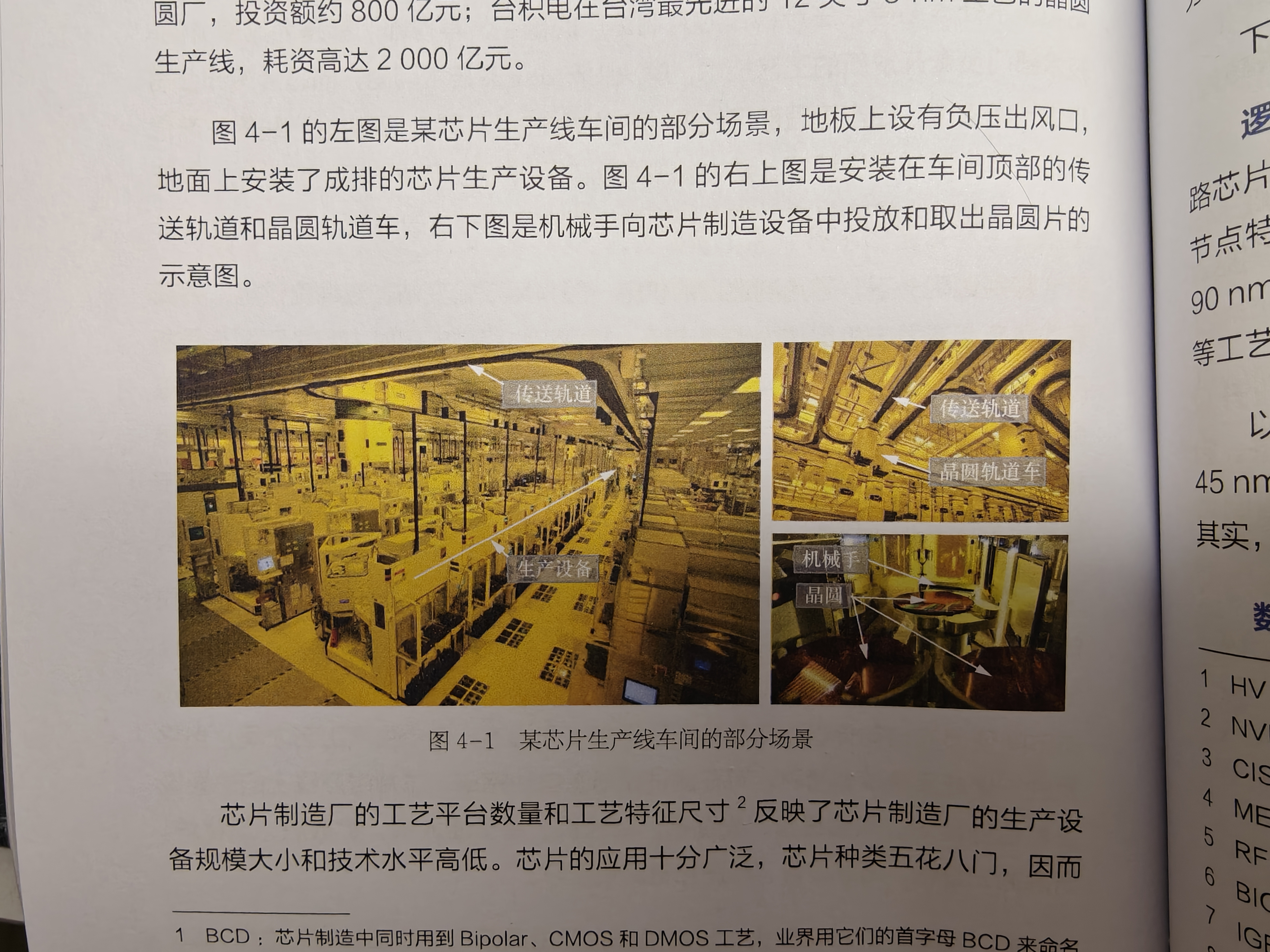 国庆节前就拿到了书,趁着假期翻看了一下,最大的特点就是这本书有大量精美的插图,比如下面这张图,某芯片生产线车间的部分场景,