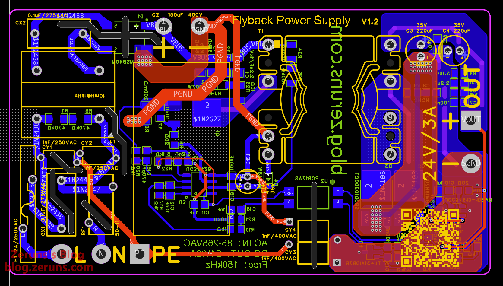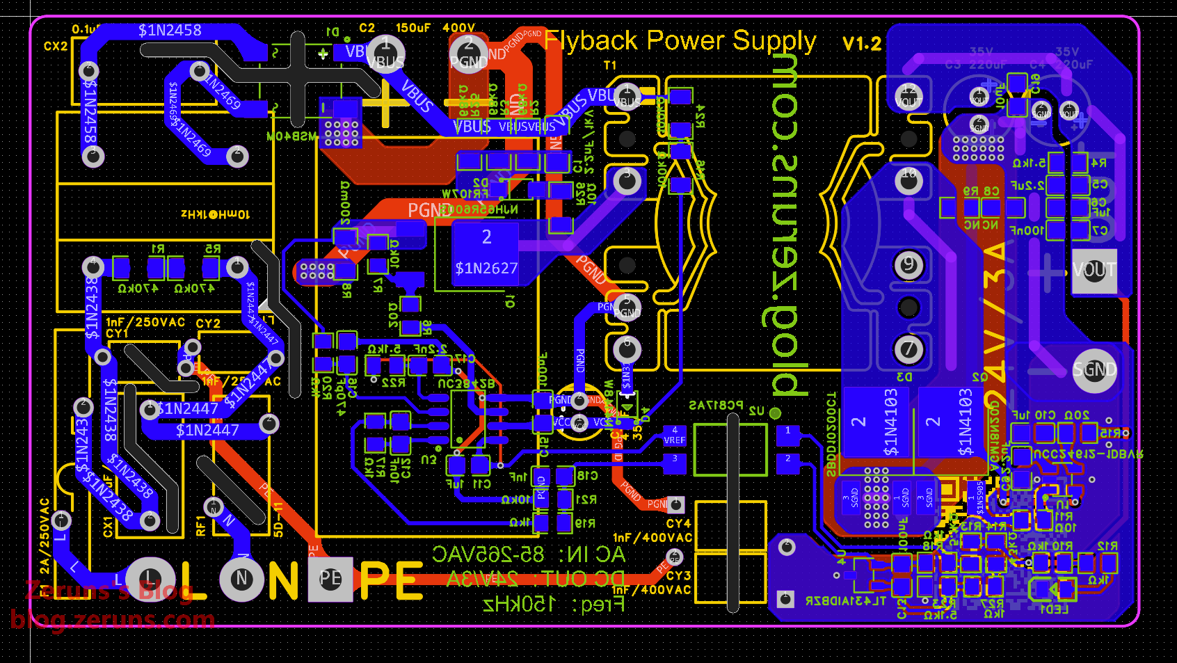 ▶立创开源平台开源链接: https://oshwhub.com/zeruns/24v3a-Flyback-Power-Supply-uc384x