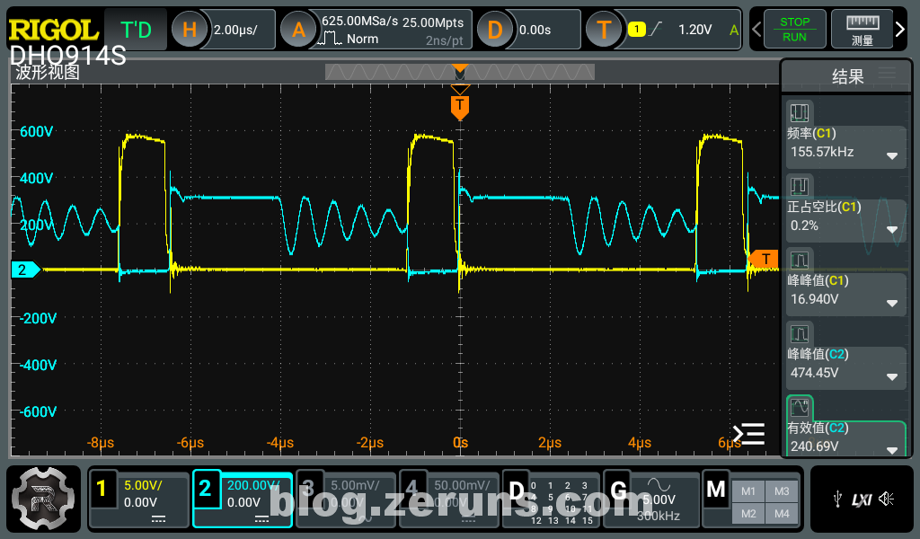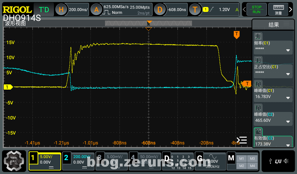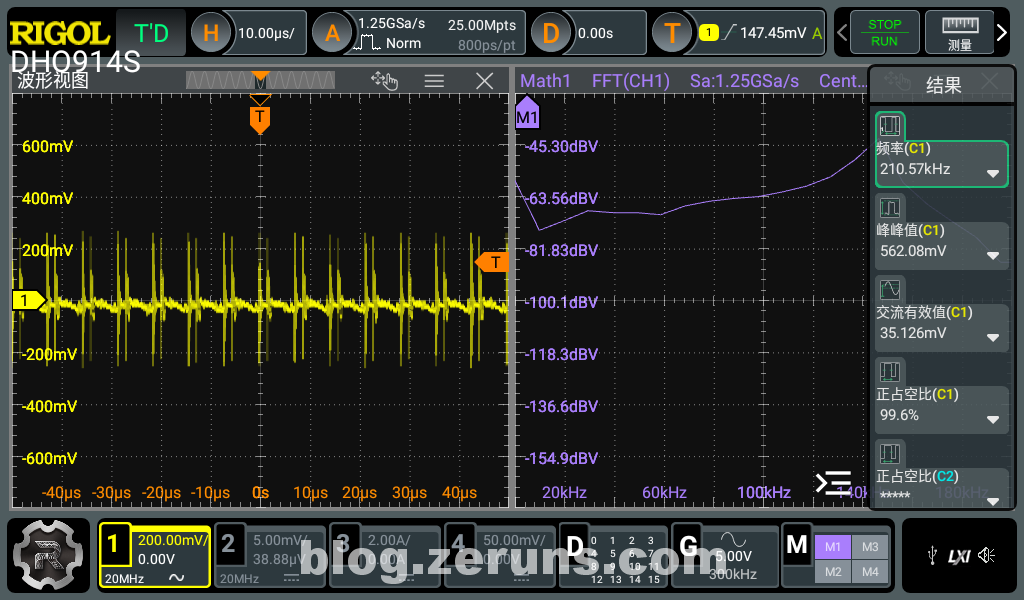 示波器是普源DHO914S:https://blog.zeruns.com/archives/764.html