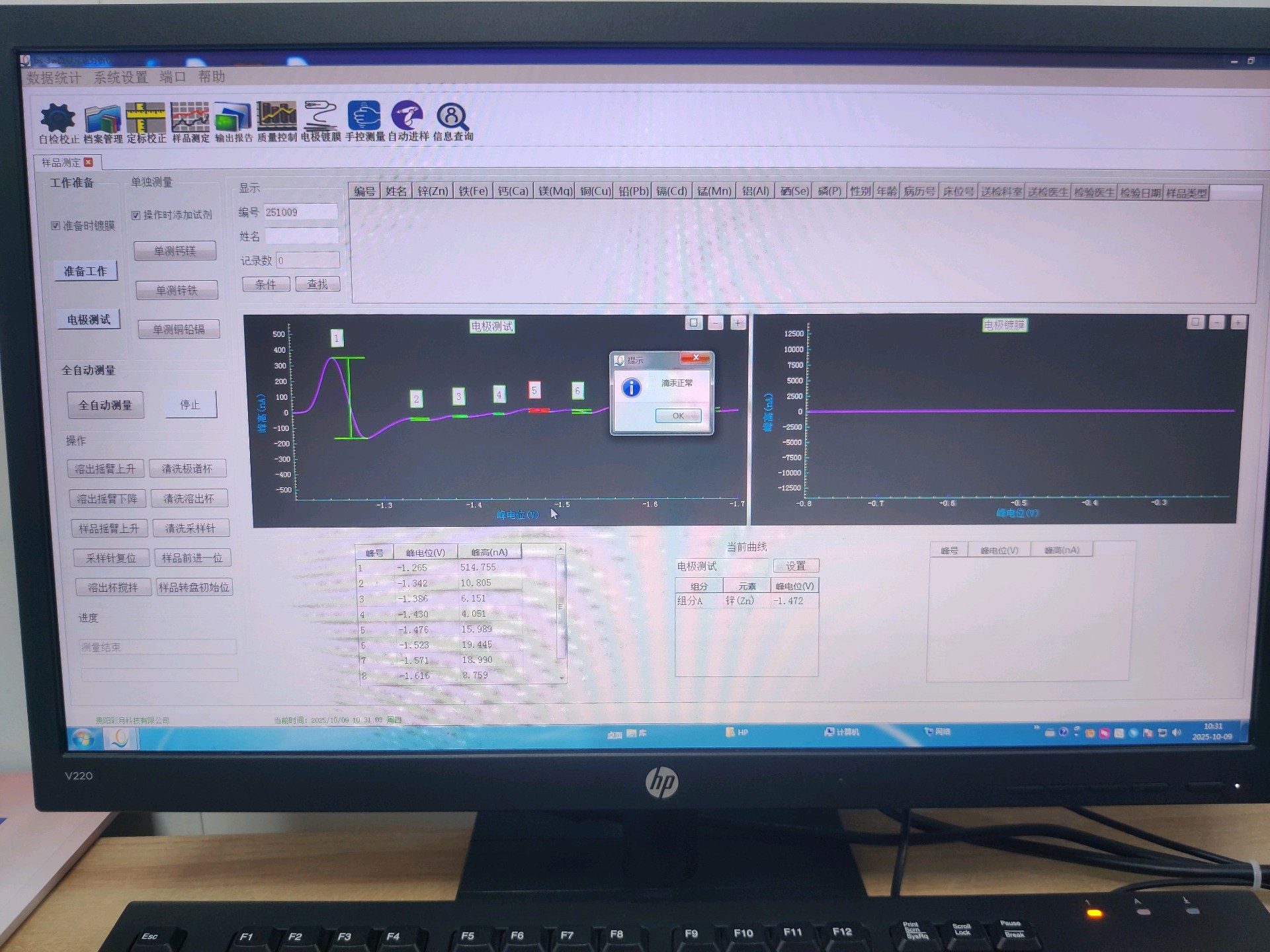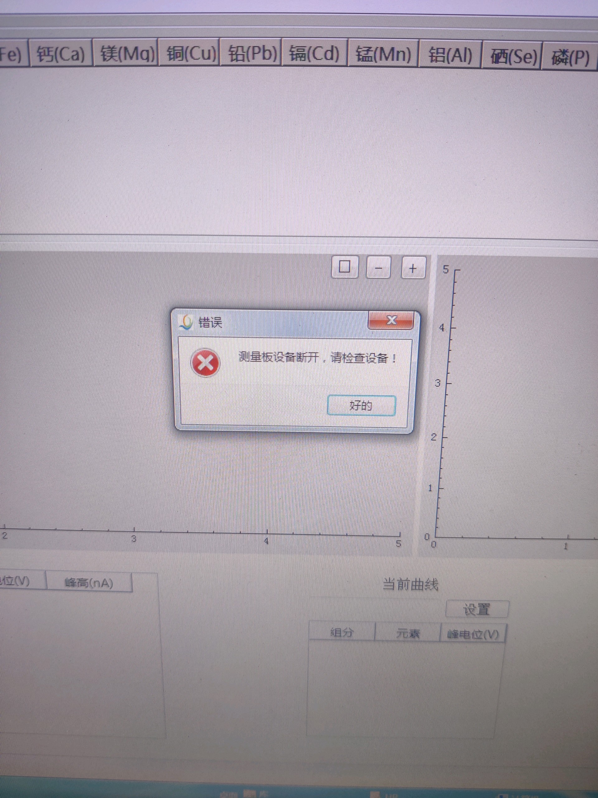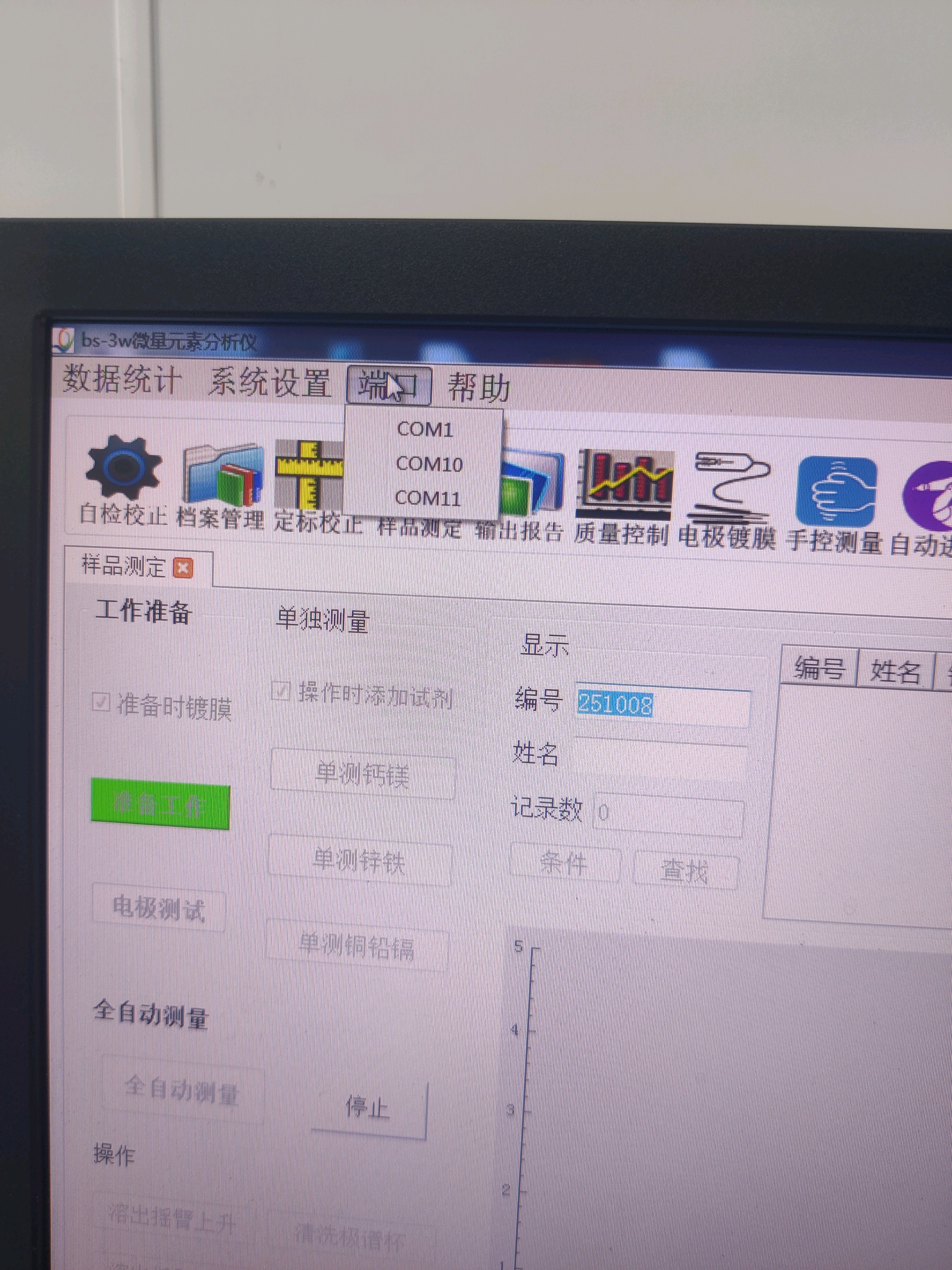 手动测试方法:选择全血锌点击连续测量,这是要把极普杯里加入超纯水,把汞滴管提升手动挤压汞滴软管查看界面有无变化。