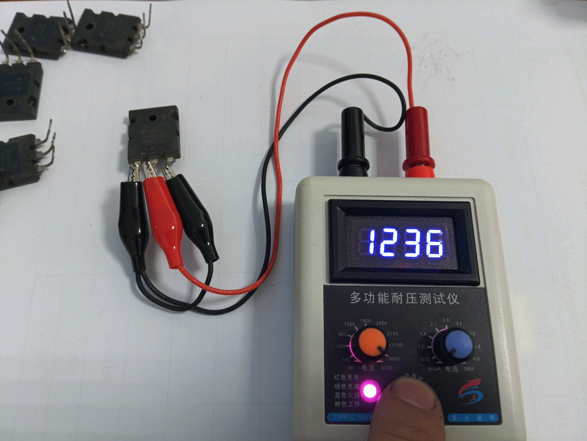 当时判断是igbt管损坏,然后就买了拆机管,收到货是这样子,引脚是加长的,丝印是打磨后重新喷码的产品介绍的图片是这样的直接退货并拉黑和客户说明原因,客户表示可以等然后买了新管子,收到是这样的原厂丝印清晰可见耐压测试通过触发测试通过装机拿到客户那测试太耀眼了,不会把镜头闪坏吧修复完成。