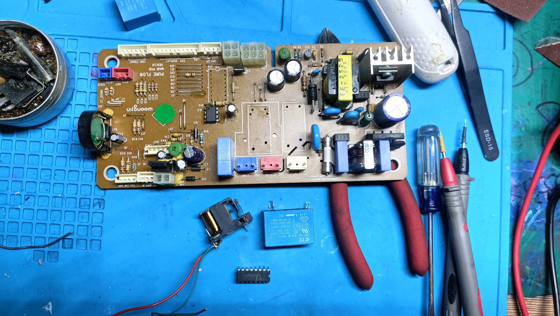 现清思路,先测下加热丝有没有阻值,万用表测出100欧左右,暂先当加热丝是好的,拆下主板,为防万一,也将制冷继电器一并换新,