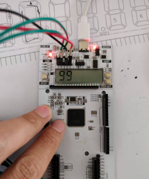从第11个段开始,由于只有4个COM,将4个数据写入SLCDC的段寄存器,驱动LCD显示对应图案或数字。